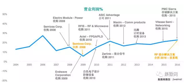 德州仪器多年来通过不断分拆和收购,专注在模拟领域,营业利润不断上升。