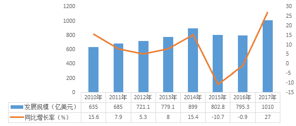 据IC Insights 2018年3月23日报道,2017年世界无晶圆半导体公司(Fabless)营收额为1010亿美元,同比增长27%,创历史新高,首次突破千亿美元大关。