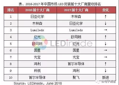 2017年中国LED封装市场前十大排行榜,及竞争优势、定位分析