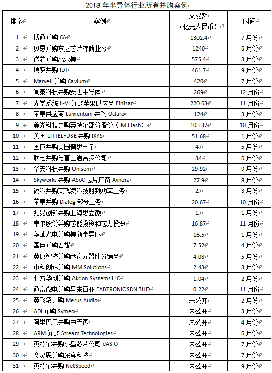 随着博通并购高通、高通并购恩智浦等收购案的失败,可以看到目前各国对集成电路产业并购监管力度不断加强,加之全球贸易摩擦的升级,今后半导体大规模并购的可能性将会越来越少,规模也越来越小,同业纵向并购可能性增大,横向跨行业的并购减少的趋势。