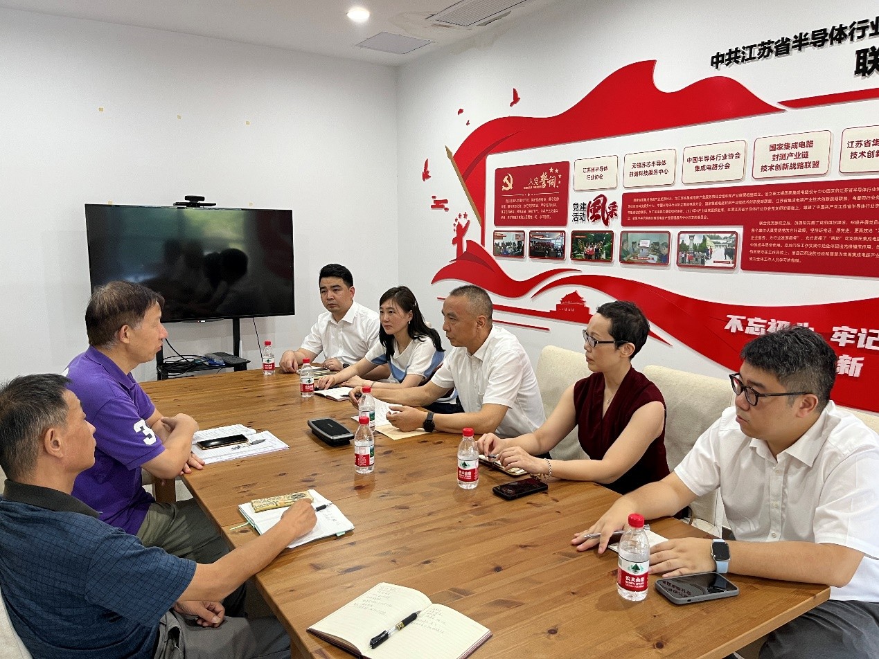 9月15日,中国人民财产保险股份有限公司江苏省分公司高级专家、无锡市分公司党委书记兼总经理卢勇其一行5人,到访江苏省半导体行业协会,开展座谈交流并参观协会办公区域。省半协副秘书长陶建中接待来访,并共同参与座谈。座谈会上,陶建中副秘书长详细介绍了协会的组织架构、服务范畴与行业影响力,同时结合无锡本地产业特色,梳理了江苏省尤其是无锡市半导体产业的发展现状、产业链布局亮点,以及区域内重点企业的技术优势与发展诉求。